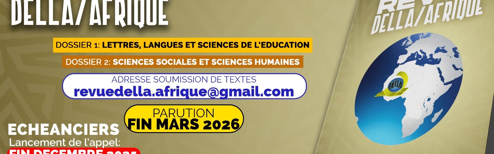 Vol 7 N° Spécial Nouvel An – Janvier 2026 Tome 1 : Lettres, Langues, Arts & Education Veuillez télécharger les articles ci-dessous : PREAMBULE Cyrile Daniel MOUKOKO KIBAMBA Dr Evariste Magloire YOGO & NOMBRE Aboubacar Dr Famahan SAMAKÉ Firmin MOUSSOUNDA IBOUANGA Ibrahim Habou KILICHI Japhet, MIAGOTAR Joseph Olivier MAGA PANGA […]