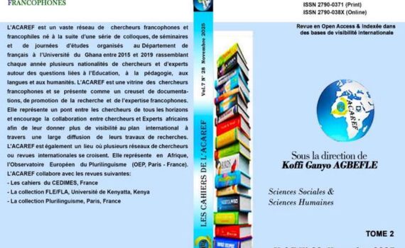 Vol 7 N° 28 Novembre 2025 Tome 3 : Education, Enseignements & Pédagogie Veuillez télécharger les articles ci-dessous : PREAMBULE Affoué Philomène KOFFI Ahodegnon Zéphyrin Magloire DOGNON Aldiouma KODIO Alhadji MAHAMAT et Al COMPAORÉ Gilbert Kouassi N’GORAN et Al Marie Gnilane Kital et Al Ouzerou Carlos NJOYA & Germaine PANDOUNKE […]