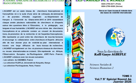 Vol 7 N° Spécial nouvel an Janvier 2026 Tome 1 : Lettres – Langues – Arts & Education Veuillez télécharger les articles ci-dessous : PREAMBULE Aladji Mamadou SANE Destin Jésus Sondzo-Owomeke GUEYE Yoro Emmanuel Léonce KI NACOULMA Moré NEMADJI CELESTINE Njiopang Mbianda Nina-Prisca SILUE Abou & KOUAME Kouadio Béranger TIBIRI […]