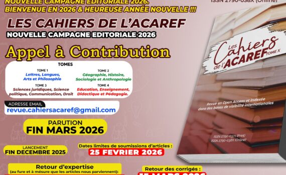 Les CAHIERS DE L’ACAREF – Vol. 7 No Spécial / NOUVEL AN 2025 Appels en cours Cahier d'ACAREF APPEL – LES CAHIERS DE L’ACAREF – FEVRIER 2025